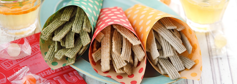 えびの香ばしい香りがおいしいスティックタイプの食べやすいスナック感覚の揚げ物です。ギザギザのスティック形状で、カリッとした食感ながらも、歯で割れやすく、くせになるおいしさです。