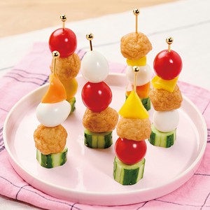 もっちもち ひとくち揚げを3個ずつ竹串に刺す。