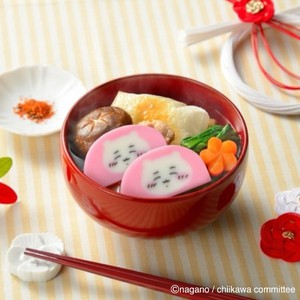 器にうどんを盛り、つゆをかけ油揚げ、ちいかわかまぼこ、青ねぎ(小口切り)をのせたらできあがり。