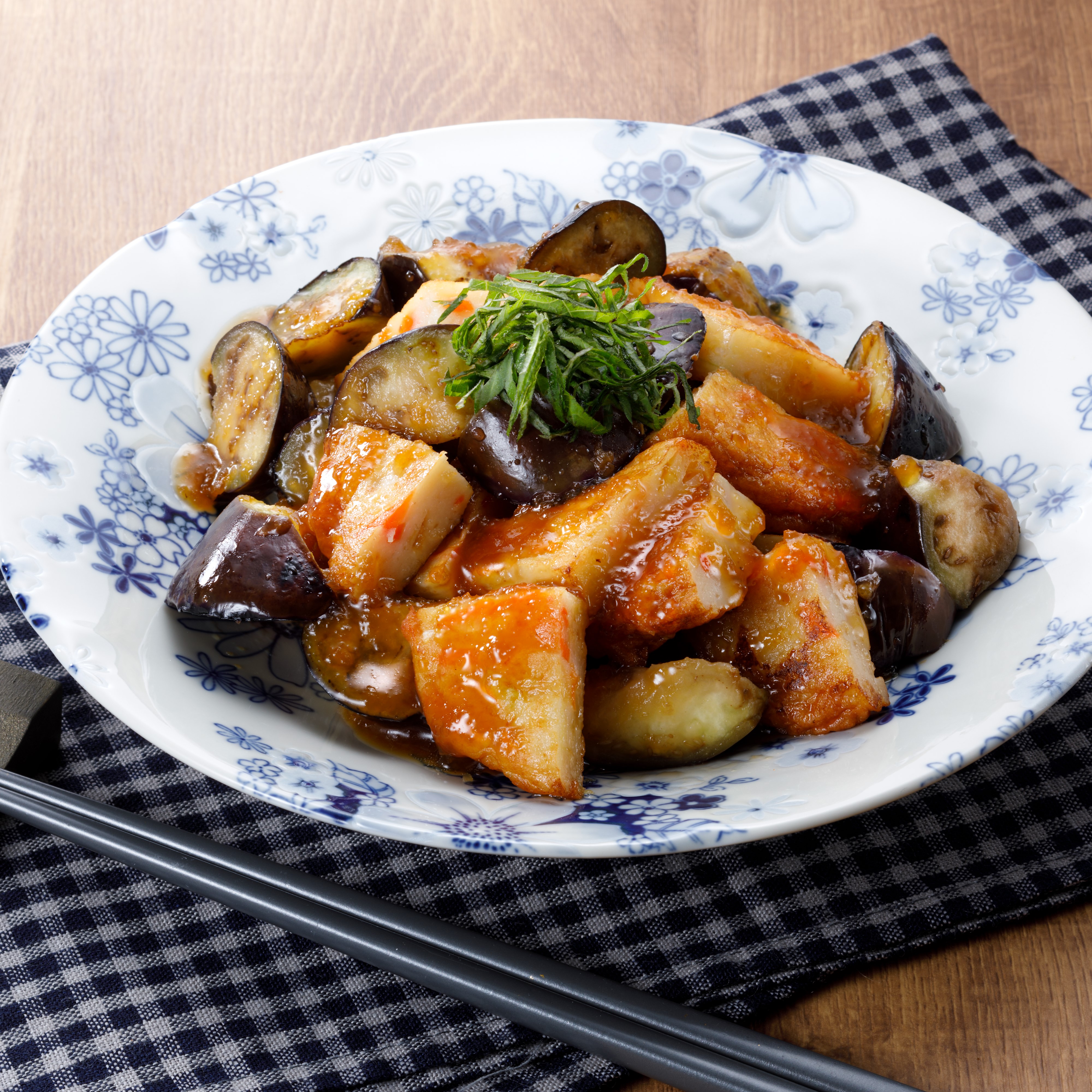 なすはひとくち大に切っておく。