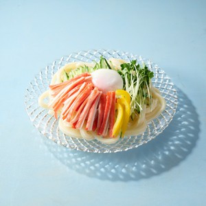 サラダ菜を敷いた器に盛りつけ、酢じょうゆ・練りがらしを添えてできあがり。