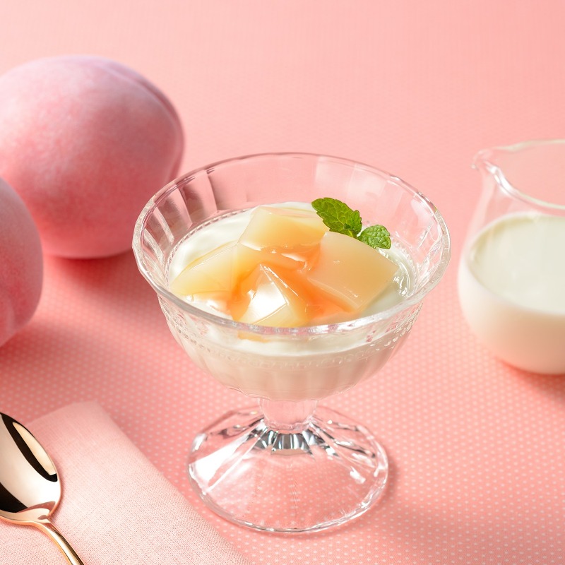 ほんのりピンク色がきれい!ヨーグルトと白桃ミルクとうふの相性も抜群です。