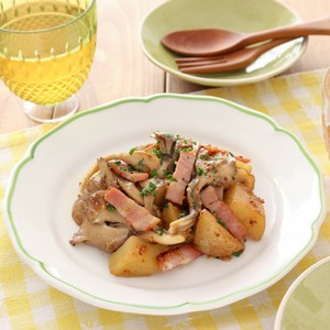 ビタミンDが豊富なまいたけを使用した簡単に作れるリゾットです。まいたけには、骨の健康に関与するビタミンDや、腸内環境を整える食物繊維が豊富に含まれています。豆乳には、骨をつくる材料となるカルシウムや、貧血予防に欠かせない鉄分が含まれています。リゾットにすることで水分が加わり、カロリーは抑えつつもしっかり食べごたえのある一品に。お好みの野菜を加えてアレンジしてもおいしく召しあがれます。