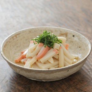 かまぼこを5mm幅に切り、いちょう切りにする。