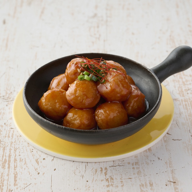 フライパンにAを入れて煮立たせ、もっちもちひとくち揚げを入れてからめる。
