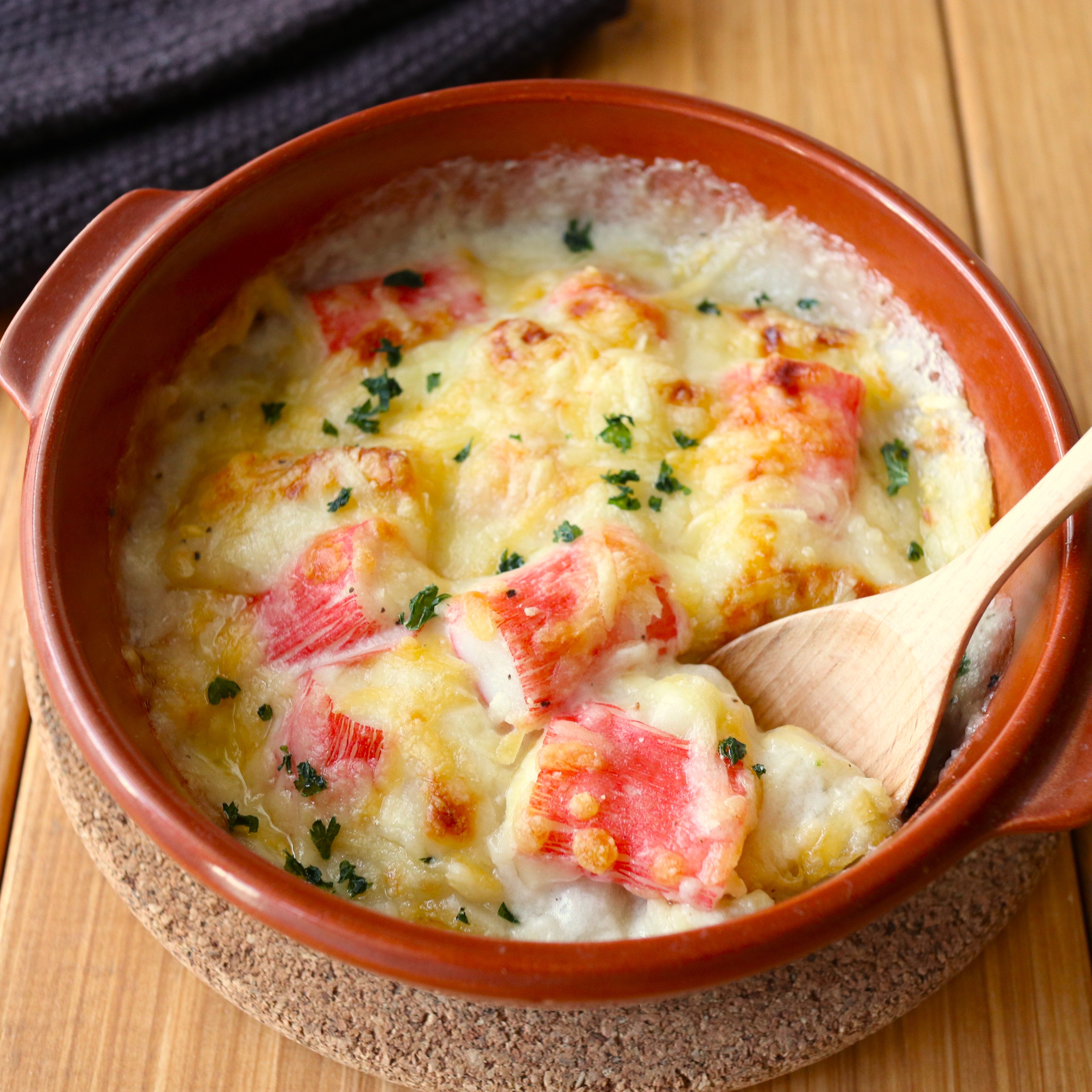 250℃に予熱したオーブントースターで3〜5分程度焼き、チーズに焼き色がついたら取り出す。