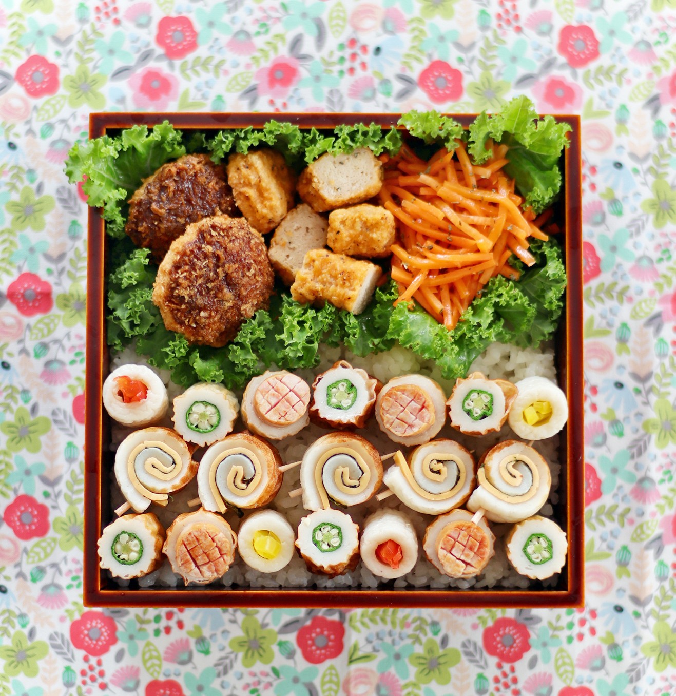 春らしさを満喫するお弁当。ちくわで作るおかずを添えて、キュートに彩ります。